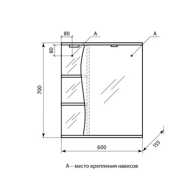 Зеркало-шкаф Волна 600/с белый AQUALINE.