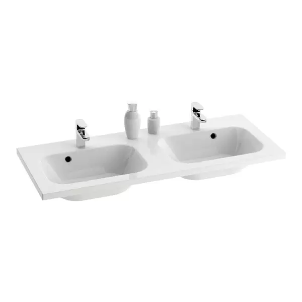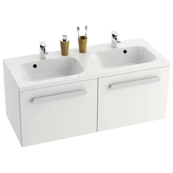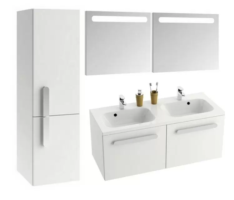 Лаконичный комплект мебели Ravak SDU 1200 Chrome состоит из зеркала со встроенной подсветкой и подвесной тумбы с двумя глубокими выдвижными ящиками для хранения вещей, комплектующейся двойной керамической раковиной.