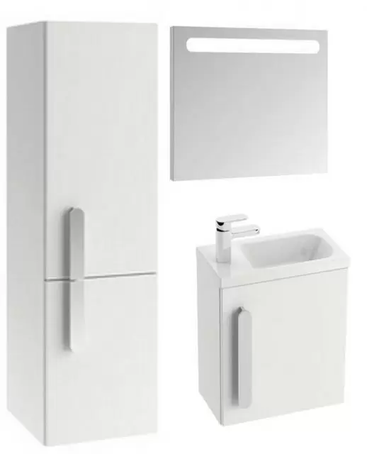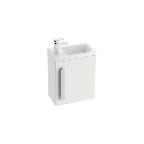 Лаконичный комплект мебели Ravak SDU 400 Chrome состоит из зеркала со встроенной подсветкой и подвесной тумбы с одной распашной дверкой и полкой для вещей, комплектующейся керамической раковиной.