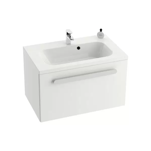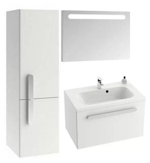 Лаконичный комплект мебели Ravak SDU 700 Chrome состоит из зеркала со встроенной подсветкой и подвесной тумбы с глубоким выдвижным ящиком для хранения вещей, комплектующейся керамической раковиной.