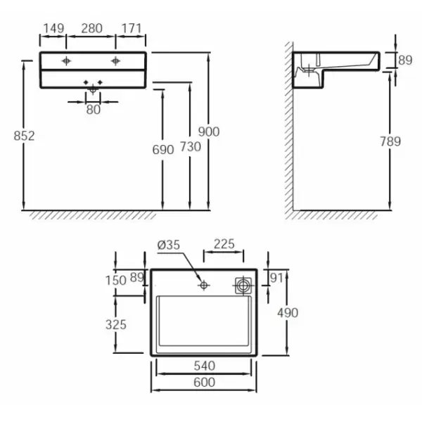 - 1 отверстие для смесителя, и 3 размеченных отверстия для сверления