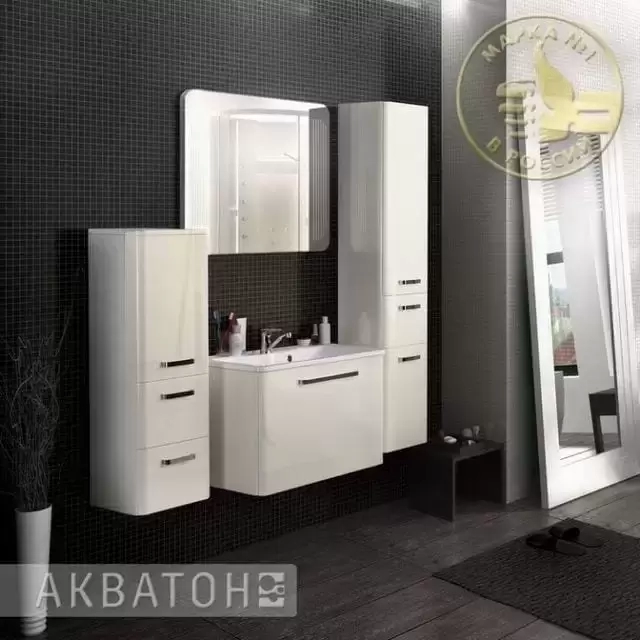 В зеркальных шкафах установлена оригинальная система автоматического открывания зеркальных фасадов с помощью газо-масленных подъемников, позволяющих плавно поднять и опустить фасад. В тумбах установлены удобные системы организации пространства, а за большим фасадом, помимо основного ящика, непосредственно под раковиной, предусмотрен скрытый ящик, предназначенный для мелких предметов. На дне ящиков – специальные антискользящие коврики, благодаря которым предметы, сложенные в ящики, не скользят и не гремят при открывании и закрывании. Тумбы комплектуются раковиной из литьевого мрамора «Сиена 110». В коллекцию так же входят и более вместительные системы хранения – подвесные шкаф-колонна и полуколонна. В высокой колонне, помимо ящика, предусмотрена бельевая корзина, а в полуколонне – вместительная ниша со стеклянной полкой.