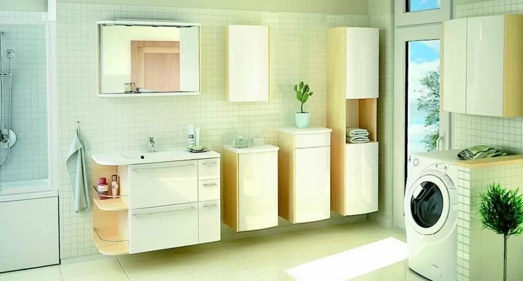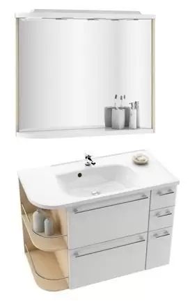 Тумба со встроенной корзиной для белья, тремя ящиками, отделением с откидной дверцой и автоматической доводкой, предназначена для умывальника Praktik S (96 см).