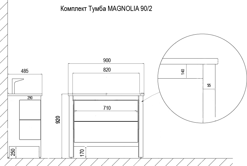 Купить Тумба MAGNOLIA 90/2 900х870х500 с раковиной Victorian 90 CS00069948 Azario  артикул: 209210 в интернет-магазине ESMAG - Екатеринбург.