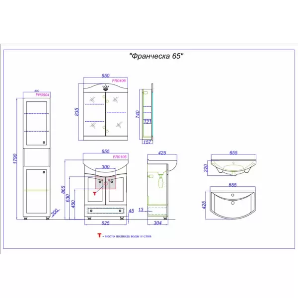 Купить Тумба на ножках FRANCHESCA 65 + раковина Стиль 650 Россия FR0106 артикул: 147289 в интернет-магазине ESMAG - Екатеринбург.