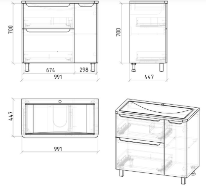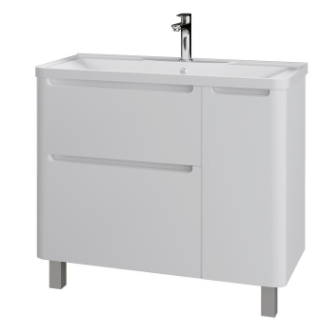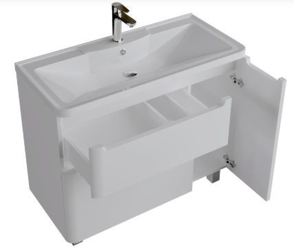 Тумба под раковину Адель 100 1010002 Grossman в белом глянцевом цвете, интегрированные ручки добавляют современный дизайн и строгий стиль. Тумба снабжена двумя ящиками и дверцей, укомплектованые системой плавного закрывания и предназначены для хранения различных предметов.