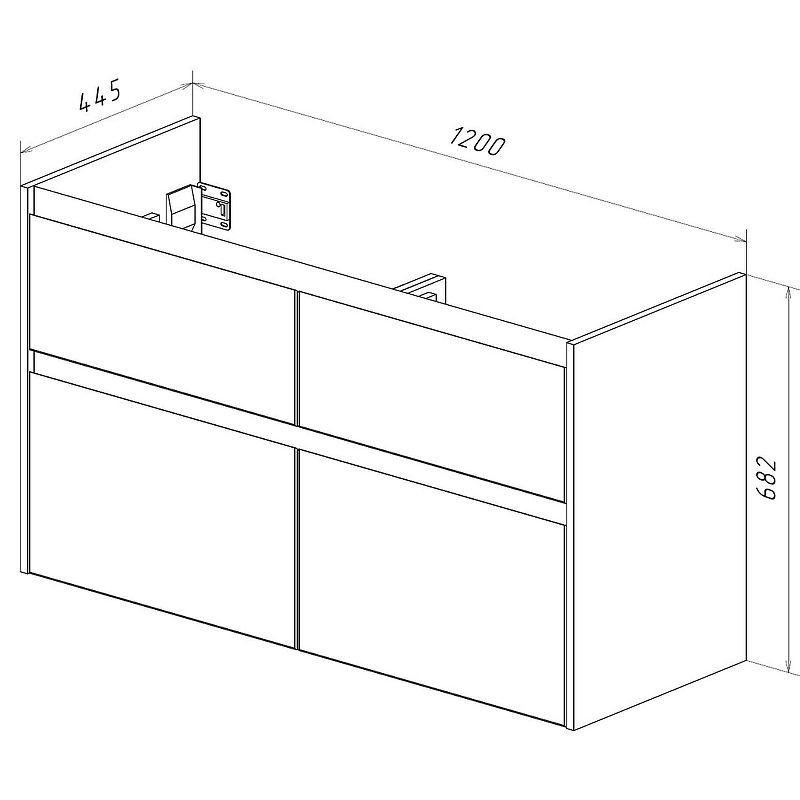 • Габариты без раковины (ШГВ): 1200х445х682 мм;