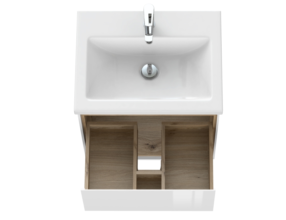 LOUNA – это коллекция, отвечающая последним тенденциям рынка: сочетание чистоты белого цвета и натурального дерева. Основной отличительной особенностью коллекции является её дизайн – сочетание белого с деревом, фрезерованная ручка, выдвижной ящик и удобная открытая полка для хранения.