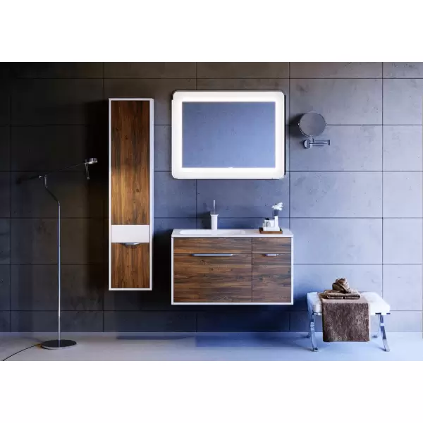 В качестве зеркального элемента для коллекции мебели « Malaga » предлагаются зеркала 90 и 120 см с широкой полосой пескоструя (абразивной холодной обработкой) и светодиодной подсветкой по периметру. Также зеркало оснащено сенсорным выключателем.