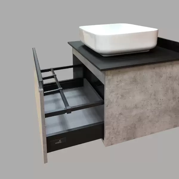 Подвесная тумба-умывальник в современном стиле с большим выкатным ящиком
