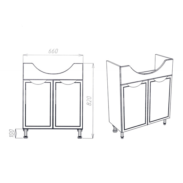 Напольная тумба-умывальник для ванной комнаты Виант Лима 70 с двумя распашными створками.