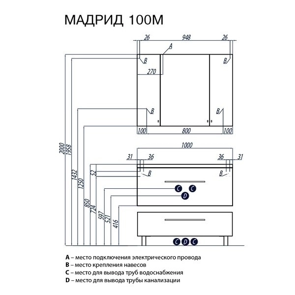 Тумба-умывальник Мадрид 100 М, 1A126901MA010.
