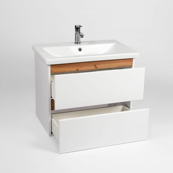 Подвесная тумба-умывальник Виант Мальта 60 укомплектована керамической раковиной Cersanit Como 60