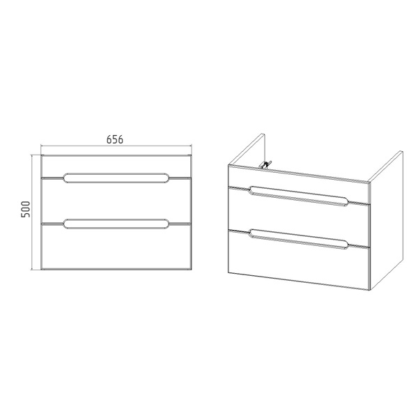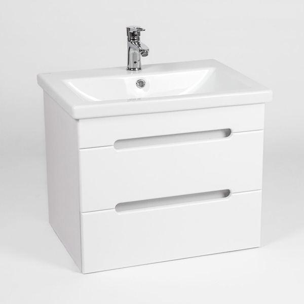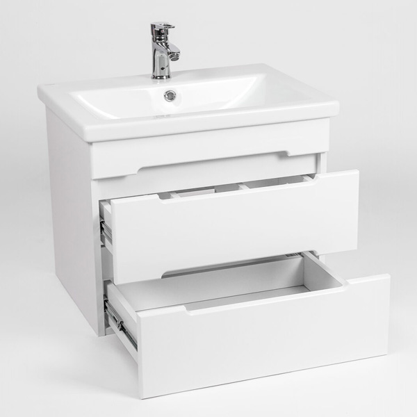 Подвесная тумба-умывальник Виант Марсель 70 с двумя выдвижными ящиками укомплектована керамической раковиной Cersanit Como 70