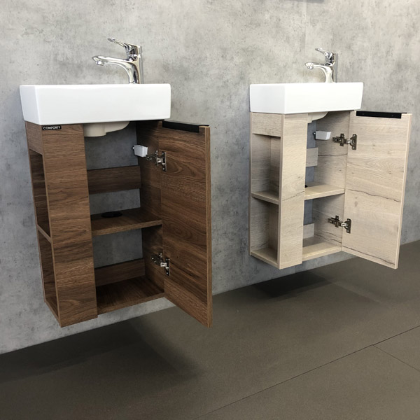 Купить Тумба-умывальник Матэ-40 дуб тёмно-коричневый с раковиной Comforty 9140 (00-00000832) артикул: 197145 в интернет-магазине ESMAG - Екатеринбург.
