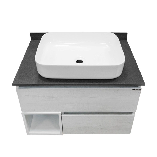 Тумба-умывальник Прага-75 дуб белый с антрацитовой столешницей, с раковиной COMFORTY T-Y9378 в г.Екатеринбург