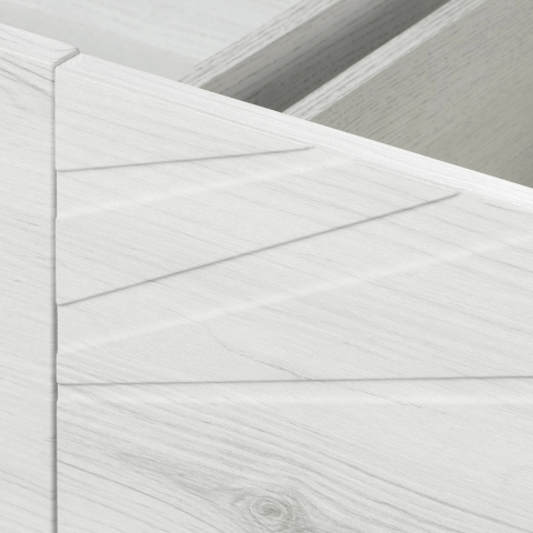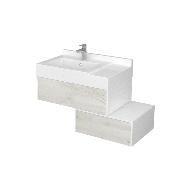 Тумба Сакура шириной 800 см снабжена одним вместительным ящиком полного выдвижения, установленным на бесшумные направляющие скрытого монтажа, оснащенного системой push-to-open. В ящике предусмотрен антискользящий коврик, препятствующий перемещению содержимого. Корпус тумбы выполнен из влагостойкой ЛДСП, окрашенной в белоснежный цвет с высокой степенью глянца полиэфирной краской ультрафиолетового отверждения. Фасады тумбы выполнены из высококачественной МДФ в пленке в древесной текстуре ольха наварра (производство Германия). Изящная фрезеровка на фасаде, напоминающая ветви дерева, придает особое очарование изделию. Удобная раковина Сакура из литого мрамора с крылом чуть ниже уровня чаши позволяет функционально использовать пространство для хранения принадлежностей для ванной комнаты.