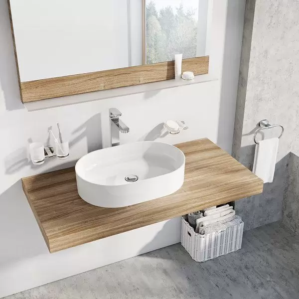 Для максимального комфорта при обустройстве ванной мы предлагаем размещать керамические умывальники Ceramic SLIM на столешнице (в исполнении со шпоном цвета ореха, дуба или в белом лаке) длиной 80/100/120 см. Благодаря глубокой пропитке столешницы являются абсолютно устойчивыми к воздействию воды.