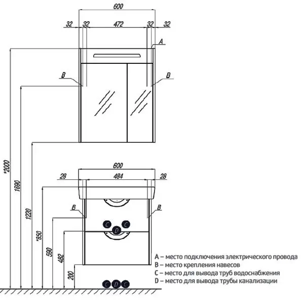 – корпус: МДФ в пленке (боковые стенки) и влагостойкая ЛДСП