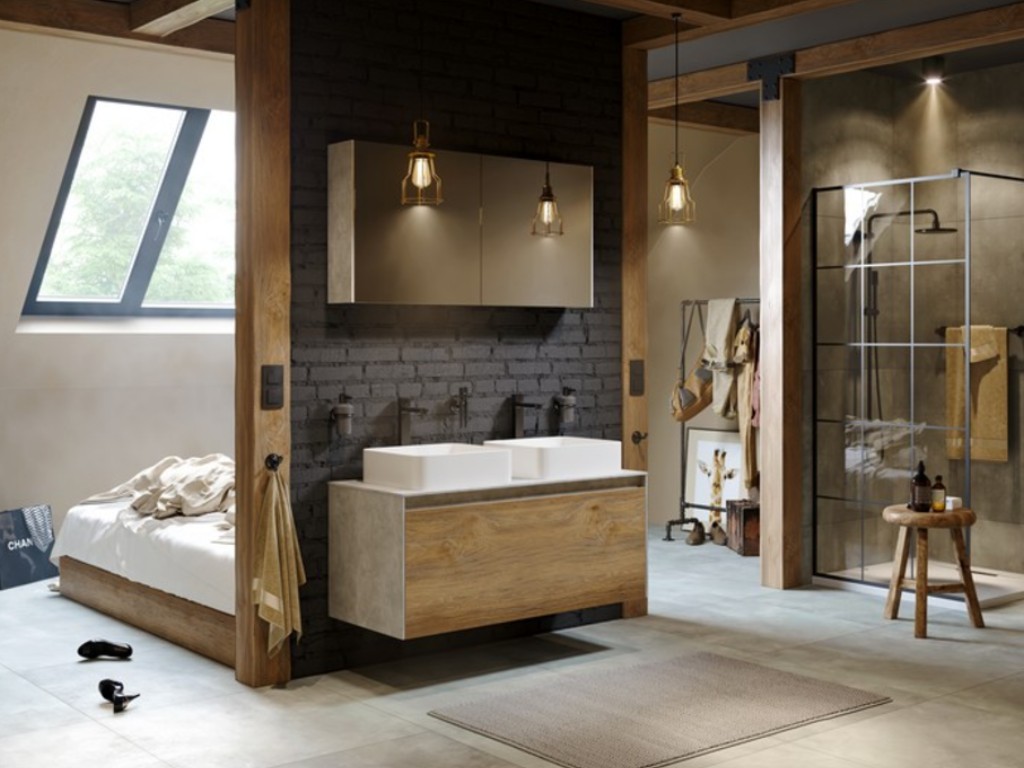 Купить Зеркальный шкаф 100 см с двумя дверьми с доводчиком., дуб балт, Mobi, MOB0410+MOB0717DB артикул: 198664 в интернет-магазине ESMAG - Екатеринбург.