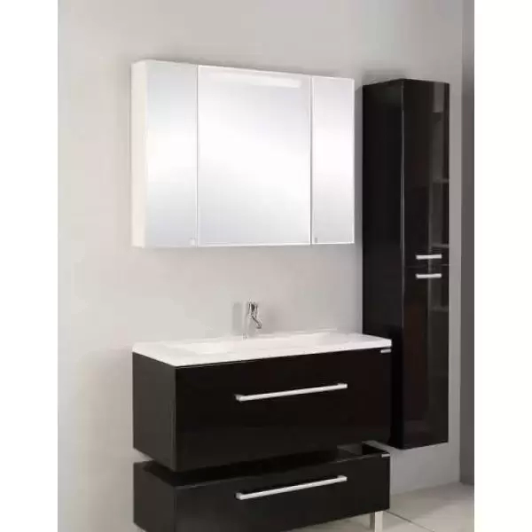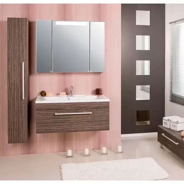 Зеркальный шкаф, внутри которого установлены стеклянные полочки, оснащен подсветкой. Облегченный вариант комплектации – зеркало Отель 120 – с подсветкой и системой ANTI-STEAM.