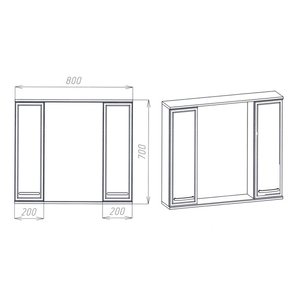Габаритные размеры ШxВxГ: 700x800x160 мм