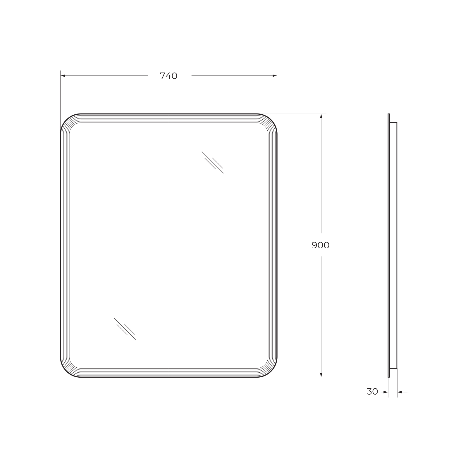 Бренд: Cezares; Страна производитель: Италия; Высота зеркала в мм: 900; Глубина мебели для ванны в мм: 30; Ширина зеркала в мм: 740