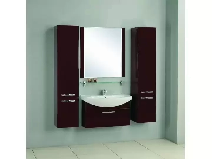 Набор «Ария 80» состоит из подвесной тумбы, зеркала и подвесного шкафа-колонны. В тумбе за фасадом расположен ящик из декоративной влагостойкой ДСП со вставками, организующими его пространство. Ящик установлен на направляющие полного выдвижения немецкого производителя фурнитуры BLUM, благодаря чему им удобно пользоваться даже с керамической раковиной, выступающей вперед. Зеркало выполнено в популярном стиле минимализма, не занимает много места и при желании может быть укомплектовано стеклянной полкой "Ария 80".