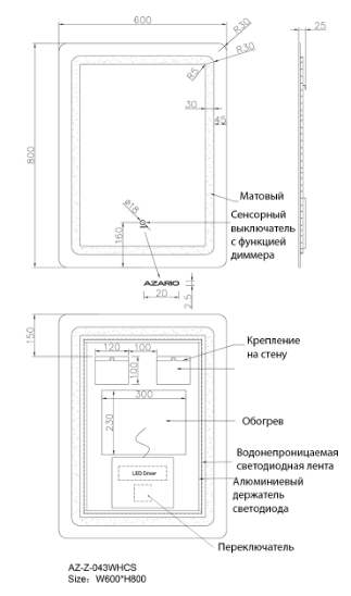 Зеркало AZ-Z-043WHCS Azario