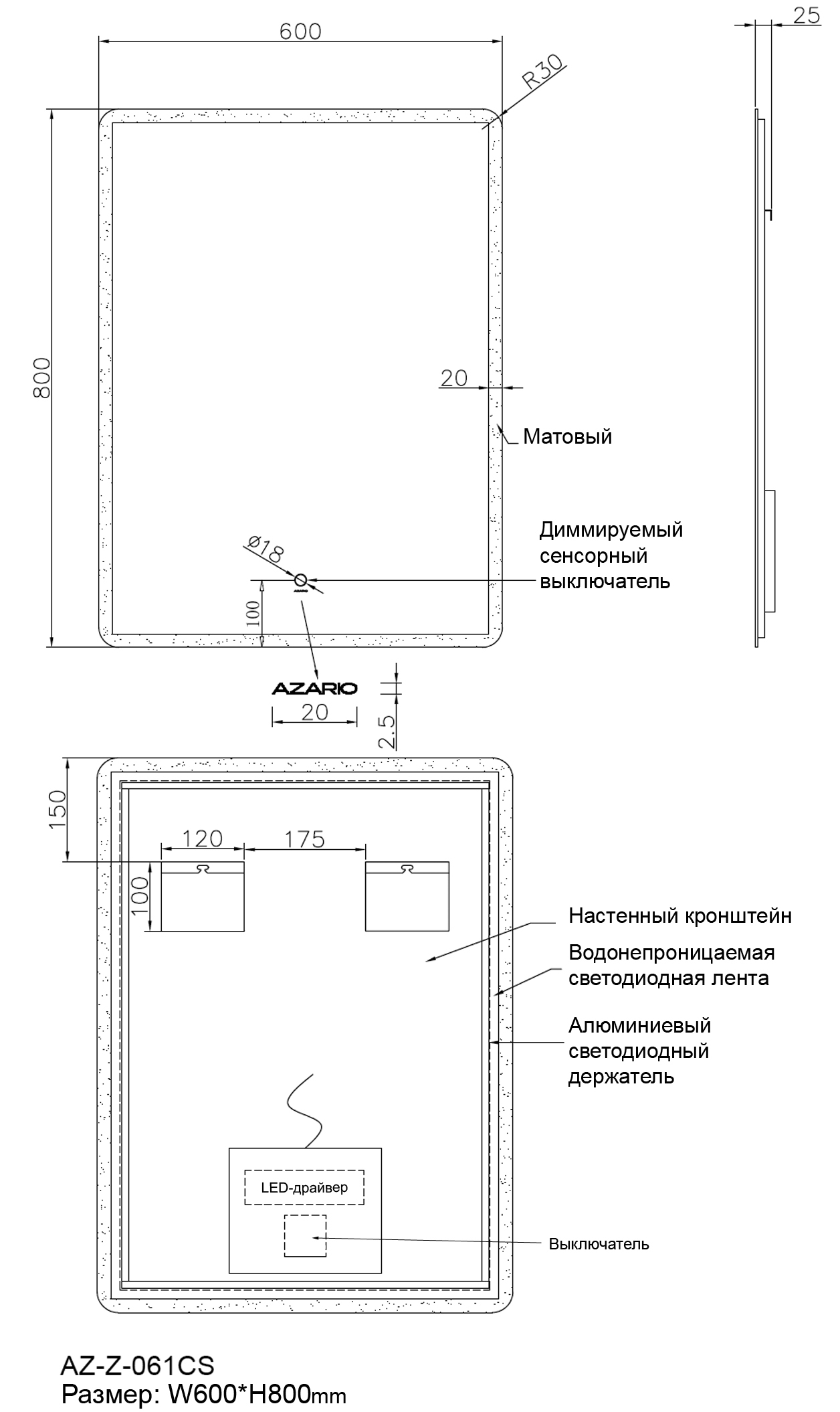 Купить Зеркало AZ-Z-061CS Azario артикул: 219650 в интернет-магазине ESMAG - Екатеринбург.