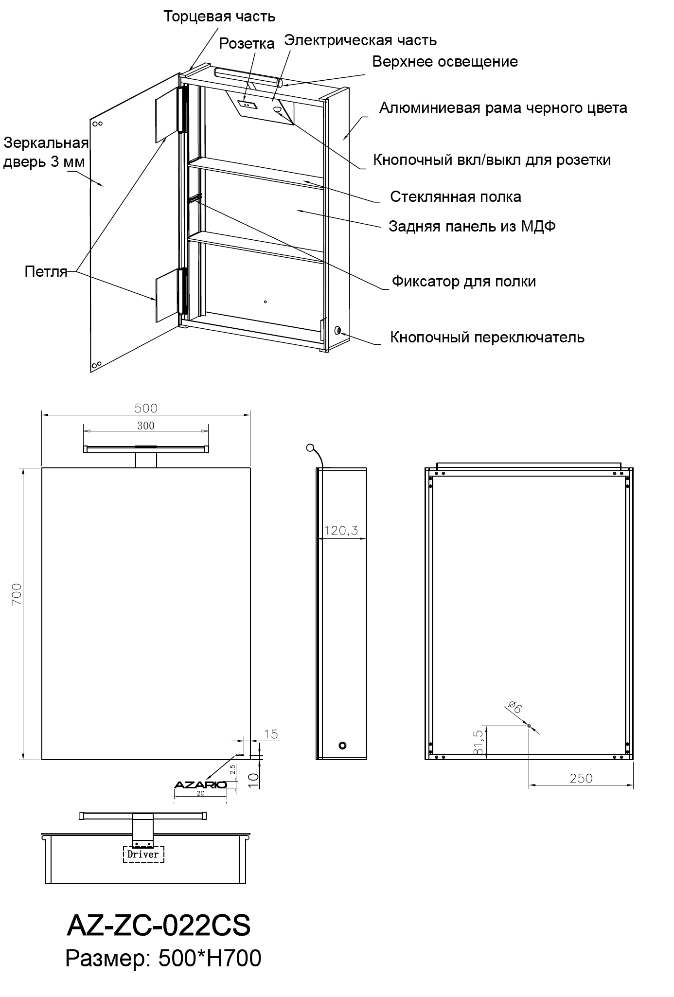 Купить Зеркало AZ-ZC-022CS Azario артикул: 219733 в интернет-магазине ESMAG - Екатеринбург.