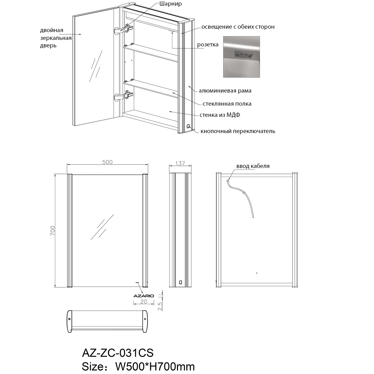 Купить Зеркало AZ-ZC-031CS Azario артикул: 219734 в интернет-магазине ESMAG - Екатеринбург.