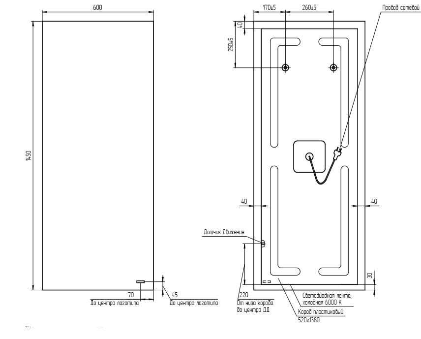 Комплектация: зеркало с подсветкой, комплект креплений, инструкция, гарантийный талон