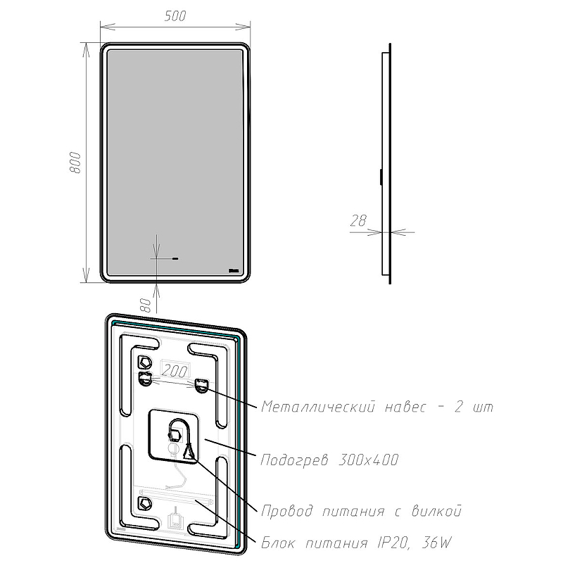 Зеркало Element 50х80 см с подсветкой и подогревом LM50Z-E Lemark