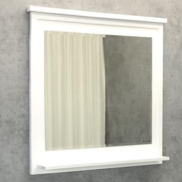 Зеркало для ванной комнаты с полочкой в обрамлении фигурной рамы из МДФ покрытого белой глянцевой эмалью. Высококачественное зеркальное полотно с амальгамой на основе серебра.