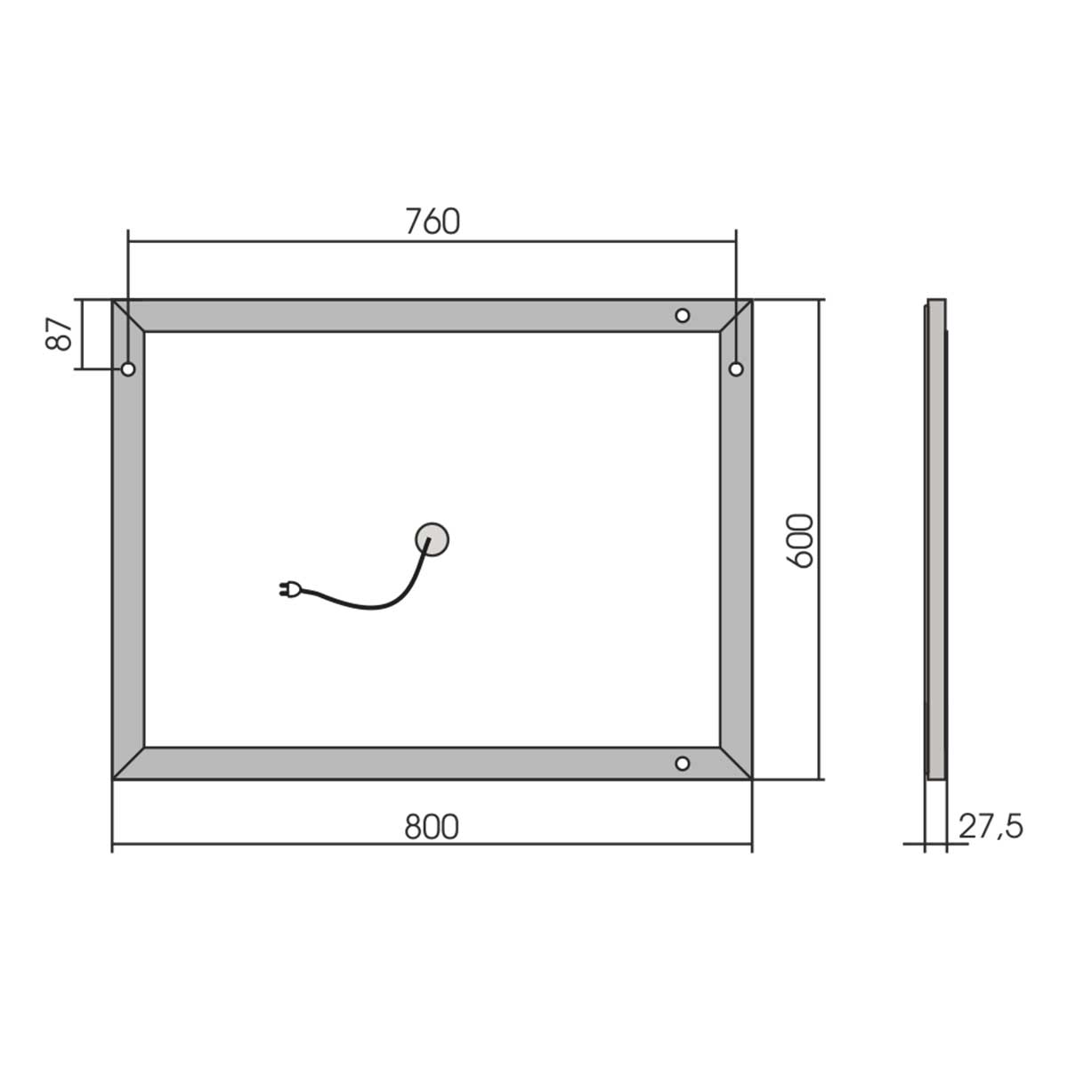 Купить Зеркало LED 800х600 c сенсорным выключателем и диммером VLM-2B800 Vincea артикул: 213754 в интернет-магазине ESMAG - Екатеринбург.