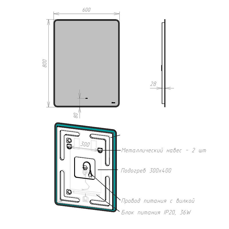 Зеркало Mioblack 60х80 см с интерьерной подсветкой и подогревом LM60ZM-black Lemark