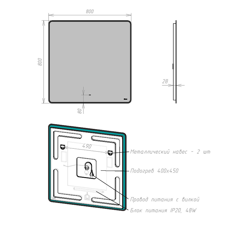 Купить Зеркало Mioblack 80х80 см с интерьерной подсветкой и подогревом LM80ZM-black Lemark артикул: 222531 в интернет-магазине ESMAG - Екатеринбург.