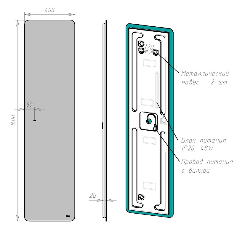 Зеркало OLSA 40х160 см с интерьерной подсветкой LM40ZNO Lemark