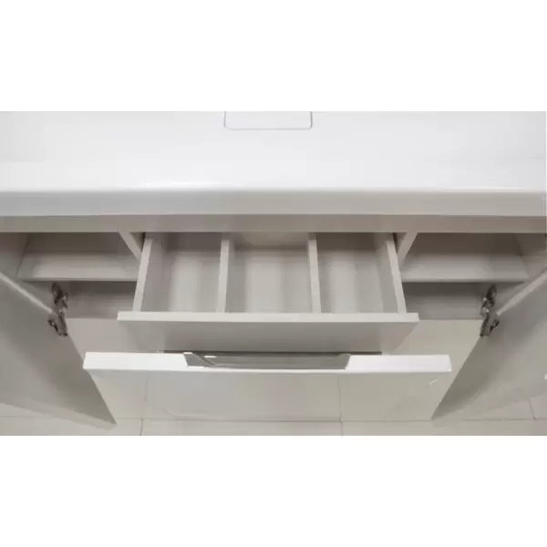 Фасады окрашены по особой технологии, благодаря которой достигается идеальная гладкая поверхность с высокой степенью глянца. Внутреннее пространство изделий коллекции выполнено с использованием декоративных материалов в популярном цвете «лен».