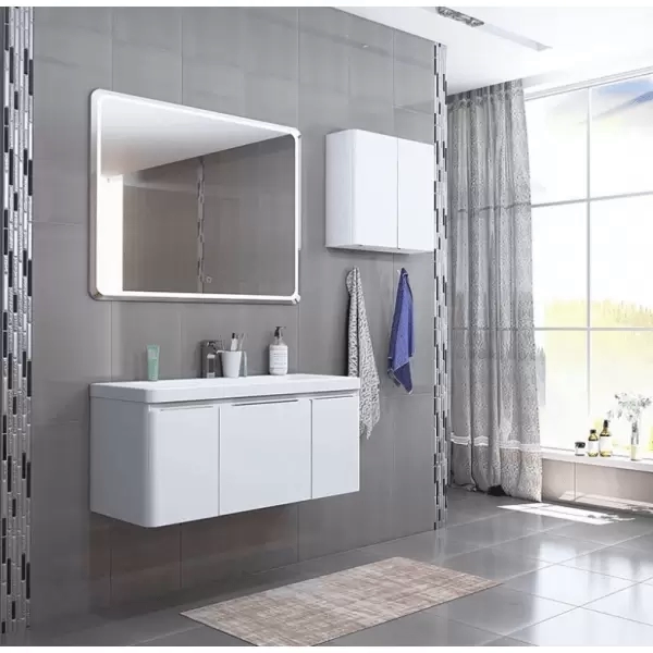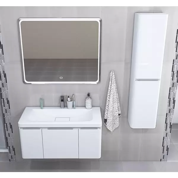 - Скрытый touch-выключатель избавляет от необходимости прикасаться к нему мокрыми руками. Система подогрева зеркала ANTI-STEAM предотвратит его запотевание.