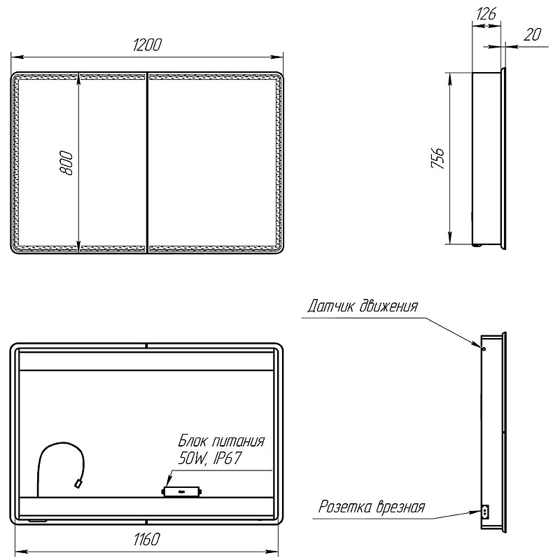 Зеркало-шкаф Element 120х80 см LM120ZS-E Lemark