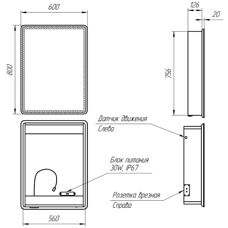 Зеркало-шкаф Element 60х80 см LM60ZS-E Lemark