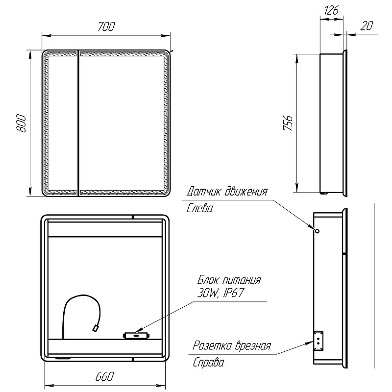 Зеркальный шкаф Lemark Element 70 LM70ZS-E с подсветкой.
