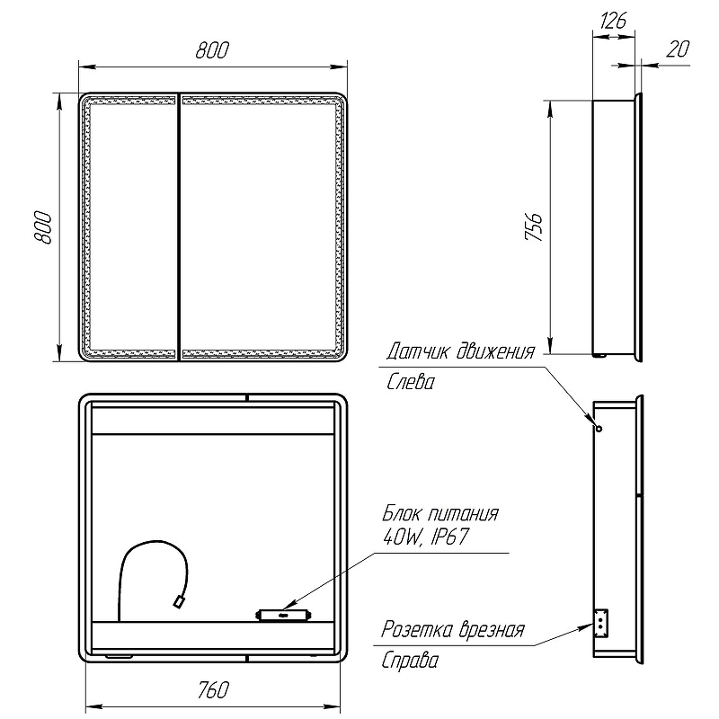 Зеркало-шкаф Element 80х80 см LM80ZS-E Lemark