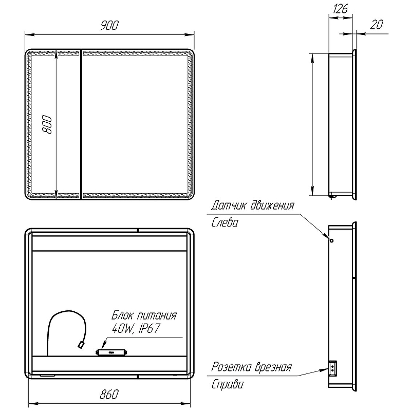 Зеркало-шкаф Element 90х80 см LM90ZS-E Lemark