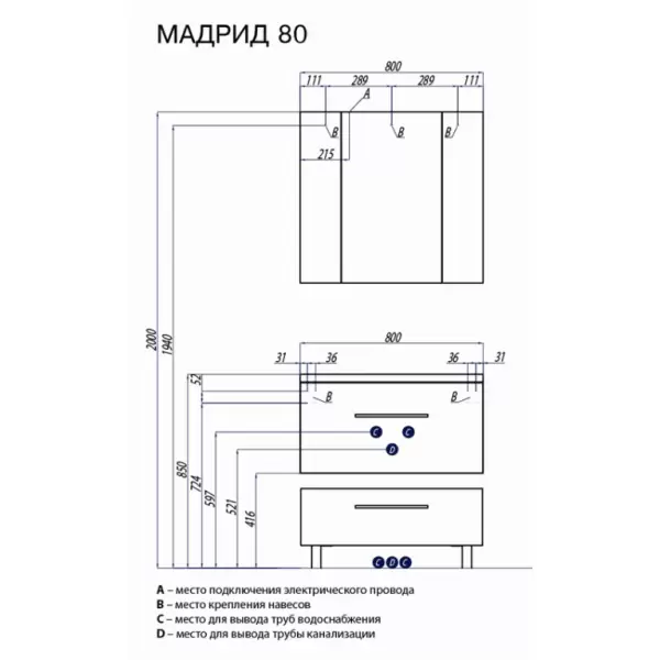 Купить Зеркало-шкаф Мадрид 80 М со светильником 1A175202MA010 артикул: 117110 в интернет-магазине ESMAG - Екатеринбург.