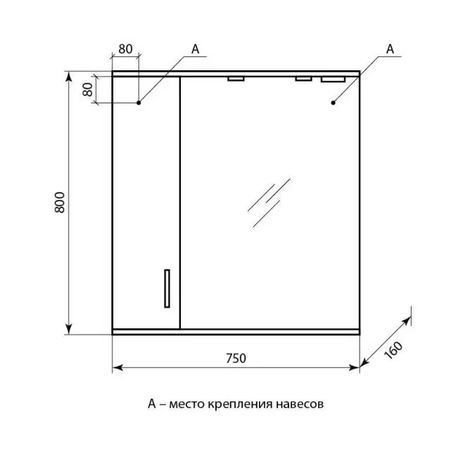 Высота зеркала в мм: 800; Цвет мебели: Белый; Ширина зеркала в мм: 750