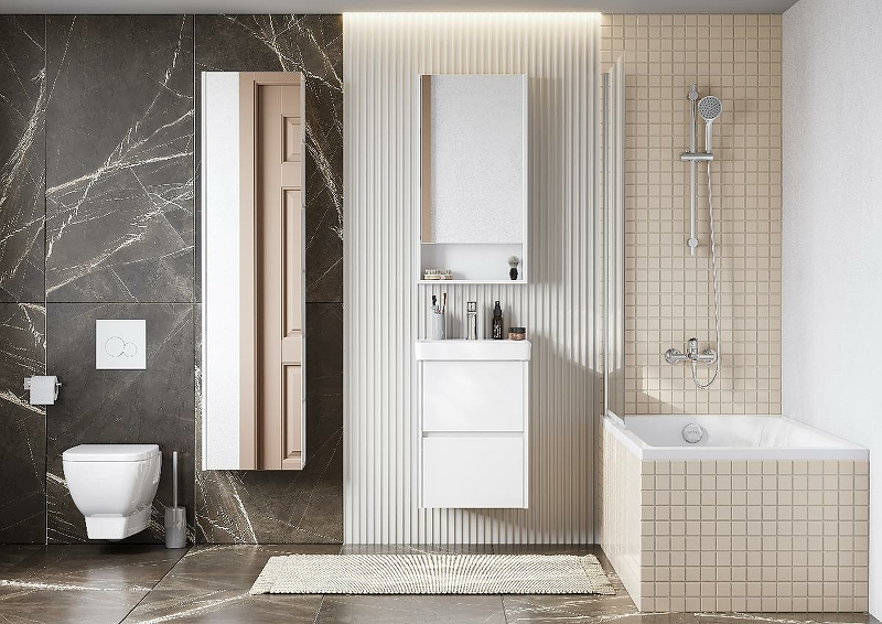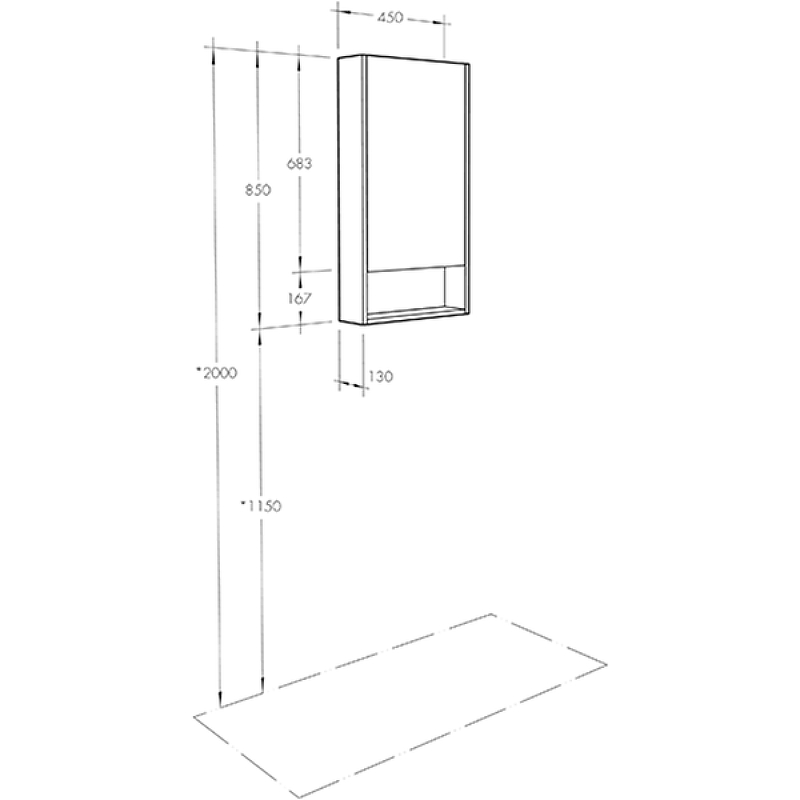 Зеркальный шкаф коллекции СКАНДИ 45 включает регулируемые стеклянные полочки за зеркальным фасадом и открытую нишу для косметических средств, которые всегда должны быть под рукой.