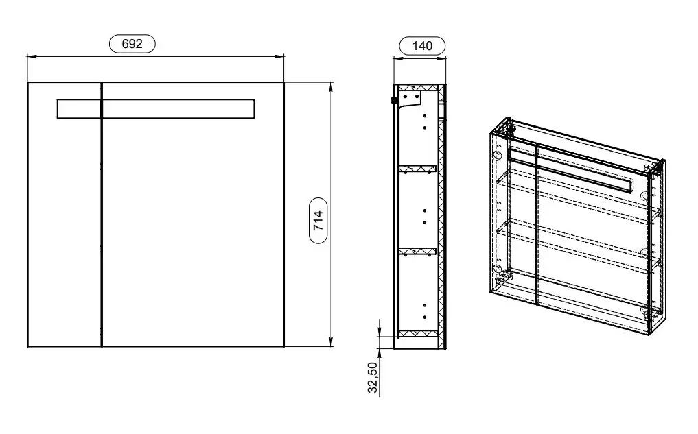 Зеркало-шкафчик: Cersanit MELAR 70 c подсветкой